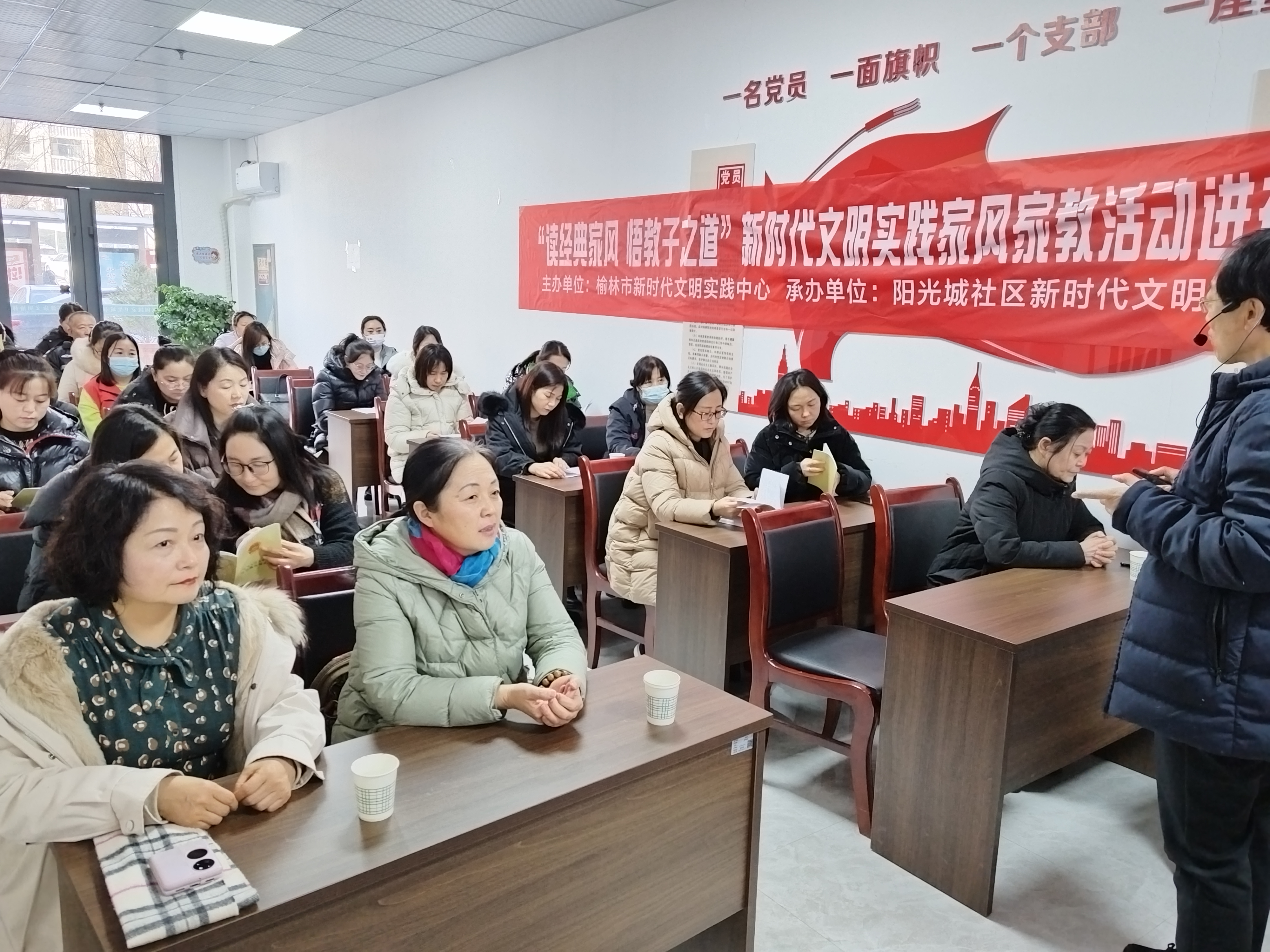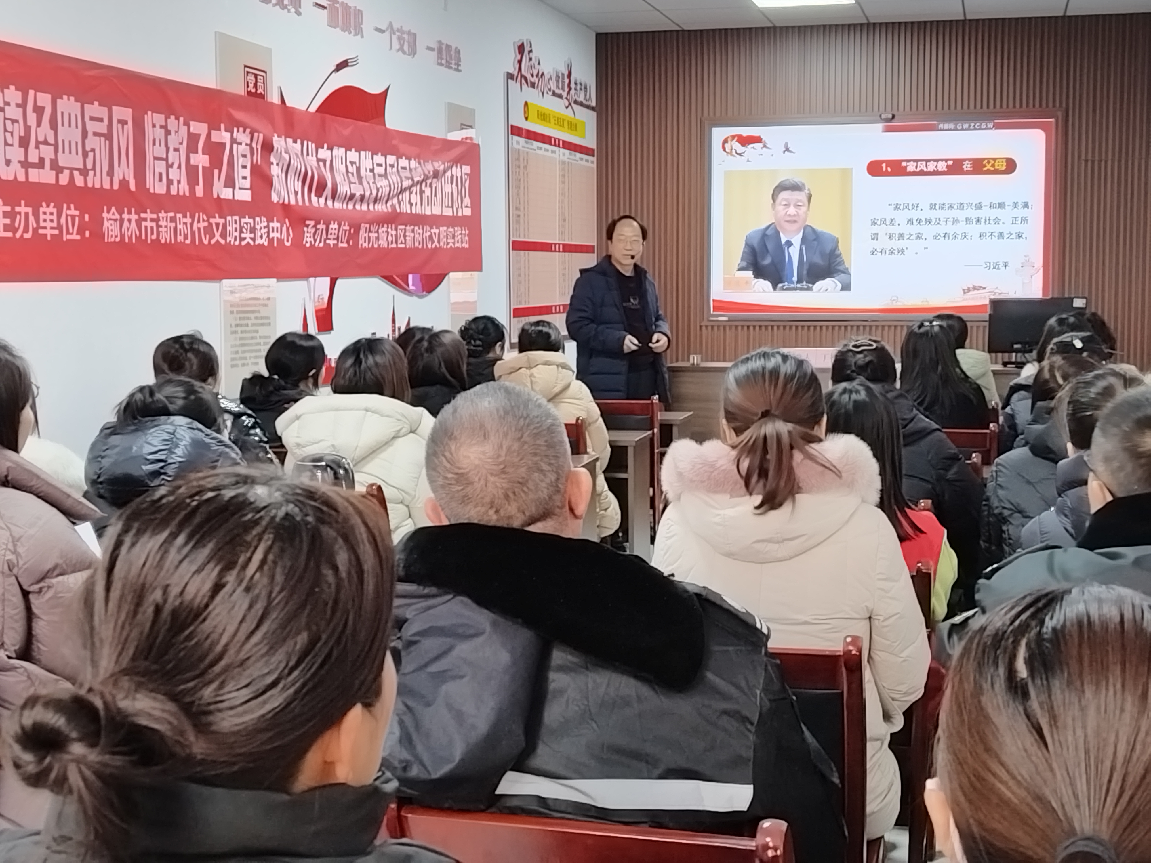 为深入学习贯彻党的二十大精神,弘扬优秀家风家教,12月18日,榆林市新时代文明实践中心联合沙河路街道阳光城社区新开展了“读经典家风 悟教子之道”新时代文明实践家风家教活动。