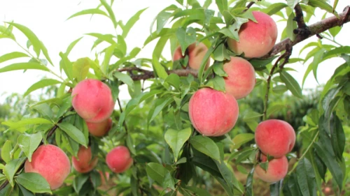 目前丰河村有桃园近千亩,采摘时间从6月一直持续到10月。桃树种植品种主要有“中油16号”“红不软”“中蟠11”“中蟠62-2”“金黄王”“金秋王”“枣桃”等不同月份成熟的特色桃。这些桃果都经过精心培育,通过浇水、施肥、剪枝、套袋等复杂工序,每一颗桃子都充满了自然的美好鲜甜。