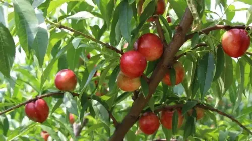 眼下,正是早熟油桃“中油16”成熟时期,成熟的桃子果皮光滑细腻,轻轻一触便能感受到那饱满的果肉。咬一口,露出晶莹剔透的果肉,果汁四溢,甜而不腻,让人回味无穷。