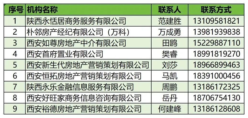 附:第二批参与西安市住房“以旧换新”活动的房地产经纪机构名单