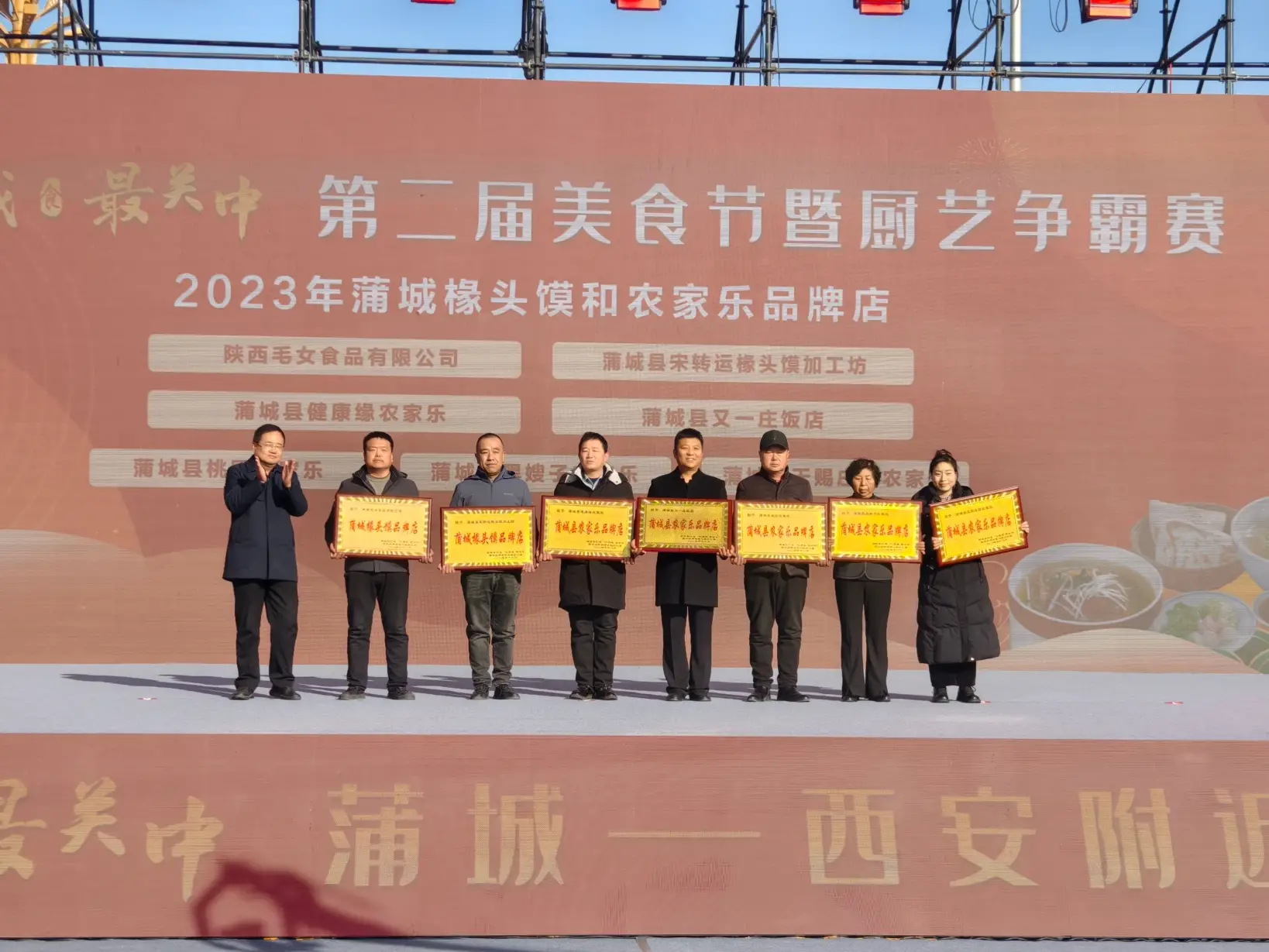 开幕式现场,为11家蒲城美食品牌店、5家蒲城小吃品牌店、7家水盆羊肉和包子品牌店、7家蒲城县椽头馍及农家乐品牌店进行表彰授牌。随后,进行了蒲城县农特产品采购签约仪式,多家采购商与供货商进行现场签约。