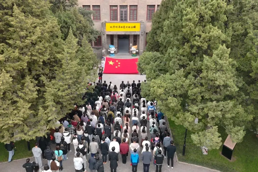 11月9日上午9时,在西北农林科技大学北校区三号教学楼前隆重举行迎领天安门国旗仪式。