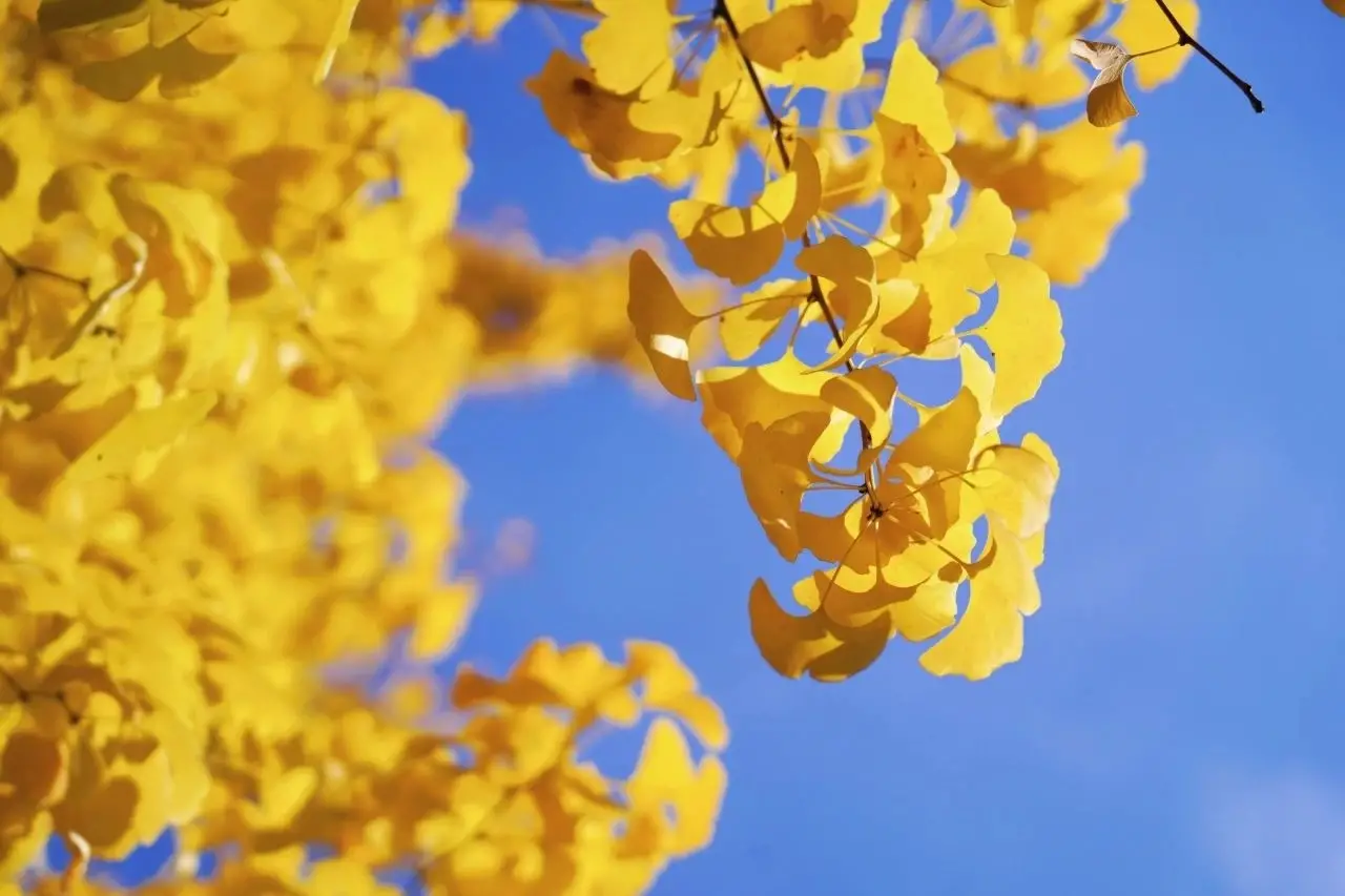 古祠内的银杏树从绿到黄,从茂盛到成熟,“栩栩乱风蝶,天半垂黄叶”,待阵阵凉风带来,山河褪尽青绿的消息,扇形的叶片便泼泼洒洒似飞扬的雨丝,散落整个大地在初冬温煦的阳光下,熠熠发亮。