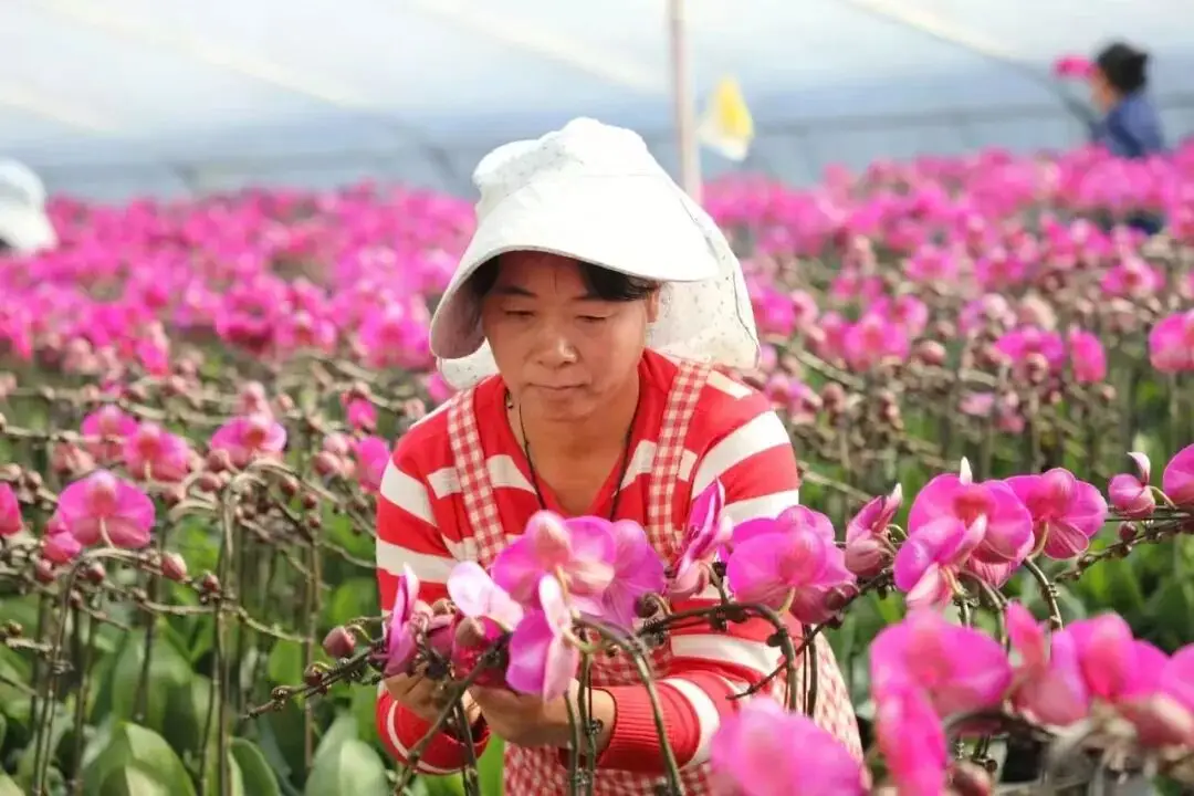 生态“颜值”变经济“产值”,关键在产业赋能,揉谷镇陵湾村选择让“鲜花经济”成为富民支柱。2021年,村集体经济“蝴蝶兰”项目应运而生,16亩土地上建起15座日光温室大棚。三年来,蝴蝶兰销售额超600万元,其中140万元以分红形式回馈村民。