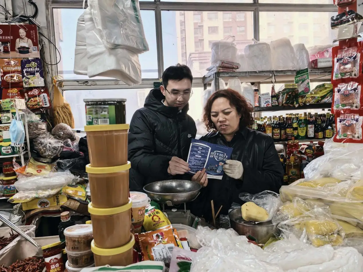 清晨7点,前柳塔村农贸市场已是人声鼎沸。该支行员工通过设立咨询台向各卖菜摊主发放“防水版”宣传折页,正面印着“高息理财”“账号异常冻结”等诈骗关键词,背面标注着应对步骤:“1.找子女商量2.拨打中行客服95566核实”。并向现场群众解析三大常见风险场景:①如何识别“虚假助农贷款电话”②社保卡诈骗的典型话术特征③定期存款与非法集资的区别,此外还指导帮助村民设置手机骚扰电话短信拦截功能,传授“三不原则”:不点陌生链接、不转验证码、不信稳赚承诺,向村民普及存款保险制度、防范电信诈骗、个人征信保护等基础金融知识。我支行工作人员结合农村实际需求,用通俗易懂的方言讲解真实案例,帮助村民增强风险防范意识,掌握维护自身合法权益的有效方法。