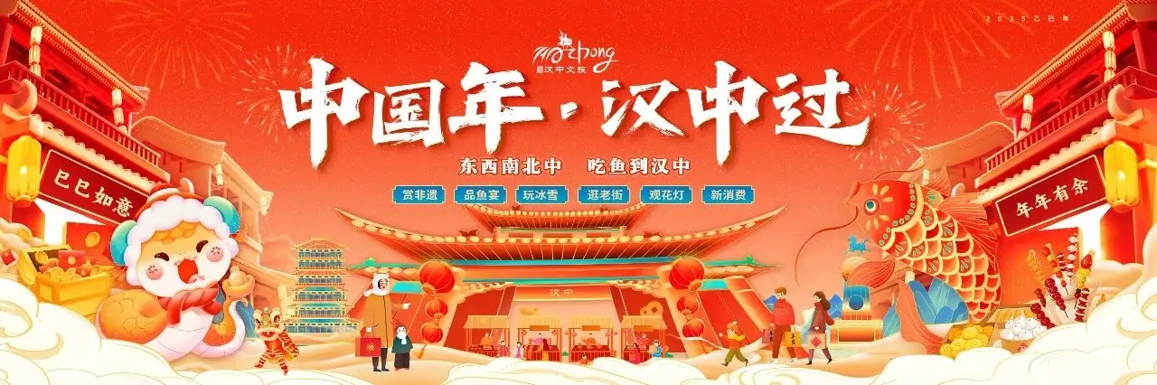 辞旧迎新,灵蛇迎春来,为满足广大市民游客多元化文化需求,充分挖掘“汉风古韵”文化内涵,汉中市创新策划了“中国年·汉中过”2025迎新春促消费活动,创新举办特色文旅活动、体育赛事、购物消费等活动,打造非遗民俗贺新春、品味传统中国年、文旅消费新体验、绿水青山赏新春四大主题体验区,为广大市民游客奉上一场场“汉风盛宴”,营造“欢欢喜喜过大年”的浓厚氛围。