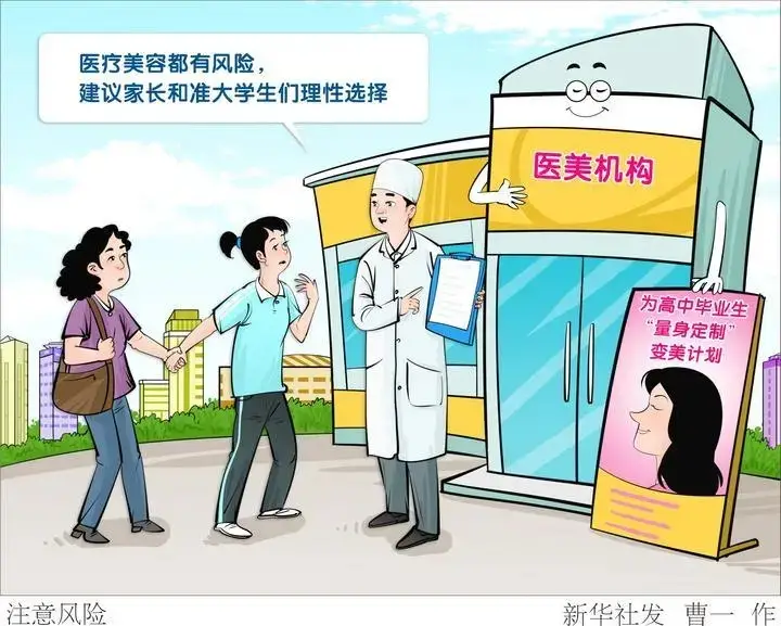 受访医学人士指出,医疗美容项目作为医疗活动,风险客观存在。青少年身体仍在发育,并不适合做瘦脸针等医疗美容项目。但一些医美机构为了商业利益,对青少年大肆推销本可不做的医美项目,并且对医美可能存在的安全风险轻描淡写,甚至只字不提。