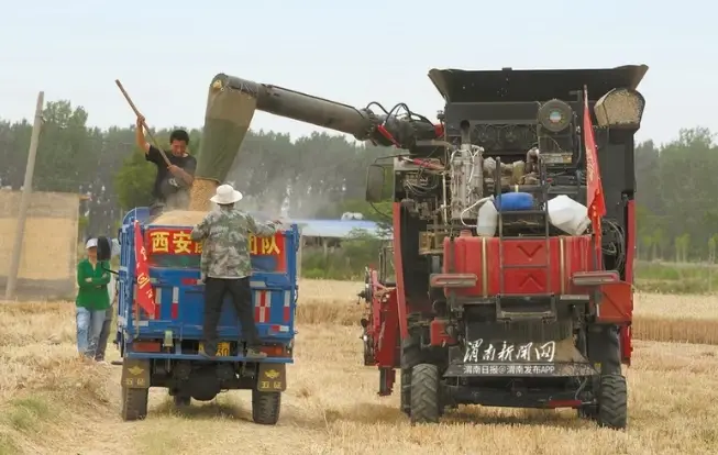 “三夏”时节,麦浪翻滚。连日来,渭南市各地农民抢抓晴朗天气,紧张有序地开展小麦收割工作,确保颗粒归仓。放眼望去,金色麦田一望无际,农机手熟练地操作着收割机,在田间来回穿梭,麦穗脱粒、秸秆回收等作业一气呵成。村庄里,晾晒的小麦铺满房前屋后;仓库内,刚刚收获的麦子颗粒饱满,堆积如山。同时,夏种、夏管工作也在紧张有序地进行……秦东大地呈现出一片火热繁忙的好“丰”景。