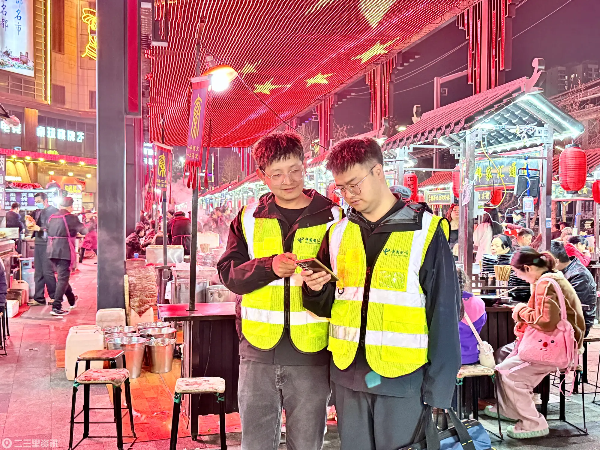 如果说焦岱大集是白日的烟火,那么汇通夜市便是咸阳的深夜食堂。被誉为“亚洲最大的面食夜市”的咸阳汇通夜市,上百个摊位只卖一种面——汇通面。每晚上万名食客慕名而来,只为那一碗红油飘香。食客们纷纷拿起手机将这份热乎劲儿分享给远方的人,让不在咸阳的朋友也能“看见”这碗面的诱惑。中国电信咸阳分公司组织专业技术团队为汇通夜市量身定制5G扩容方案,重点增强人流密集区域的信号强度与网络容量,确保直播不卡顿、支付不延迟。信号满格,畅快在线,以数字之力点亮城市夜经济。