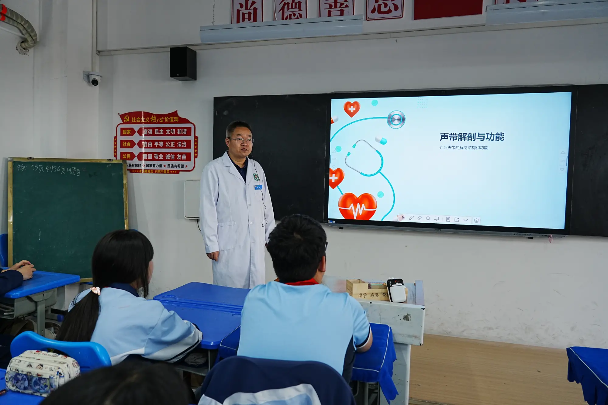 4 月 16 日,正值第 24 个 “世界嗓音日”,为守护青少年嗓音健康,普及科学用嗓知识,汉滨初中邀请安康市中医院耳鼻喉科专家团队走进校园,开展科学用嗓专题宣讲活动,为部分班级学生带来专业、实用的嗓音健康指导。