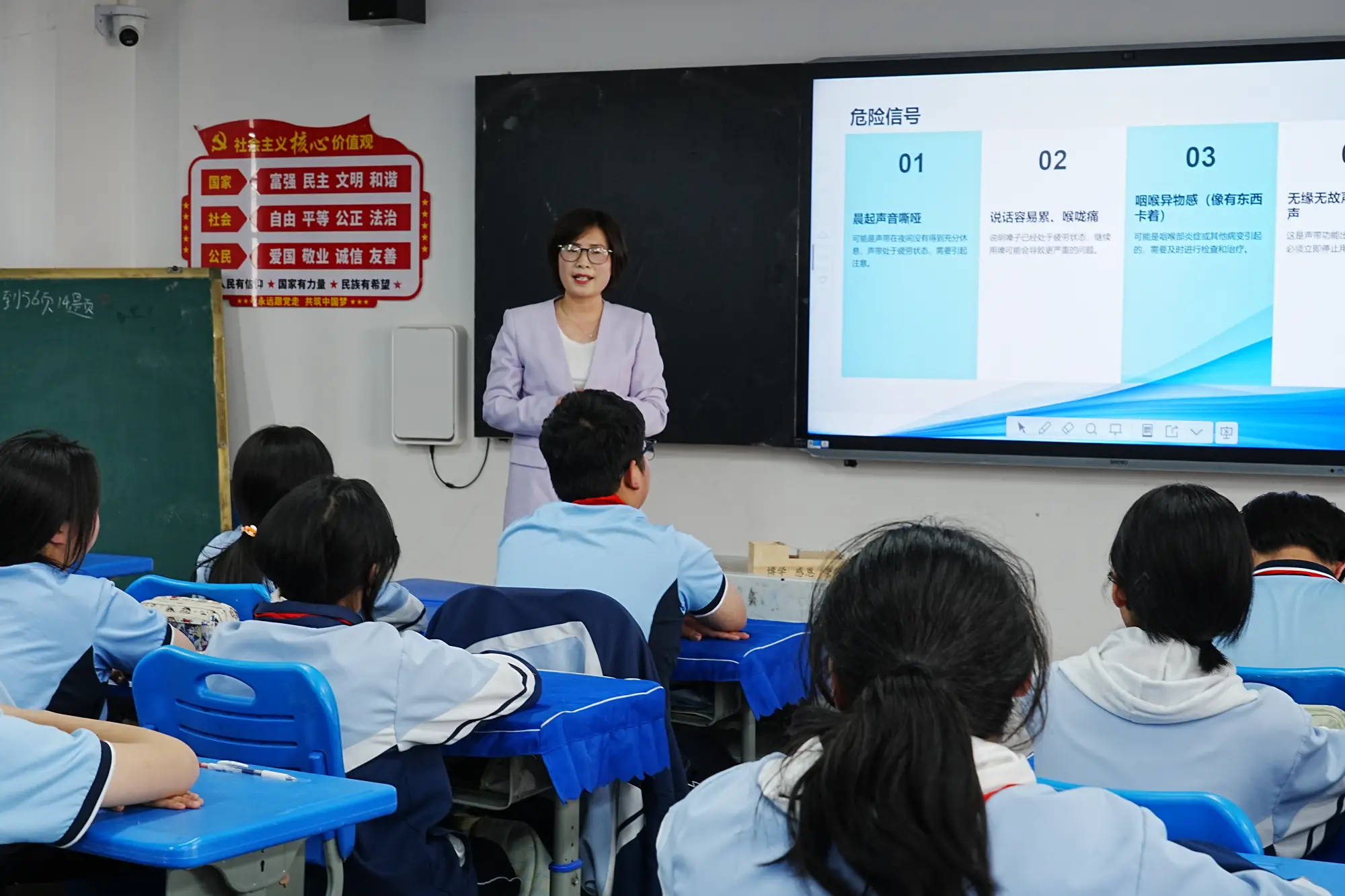 “通过今天的学习,我终于明白小声说话也会伤嗓子!” 八年级 14 班学生吴紫歌分享学习感悟,“今后我会养成喝温水的习惯,用嗓过度就及时休息,用科学的方法保护好自己的嗓子。”