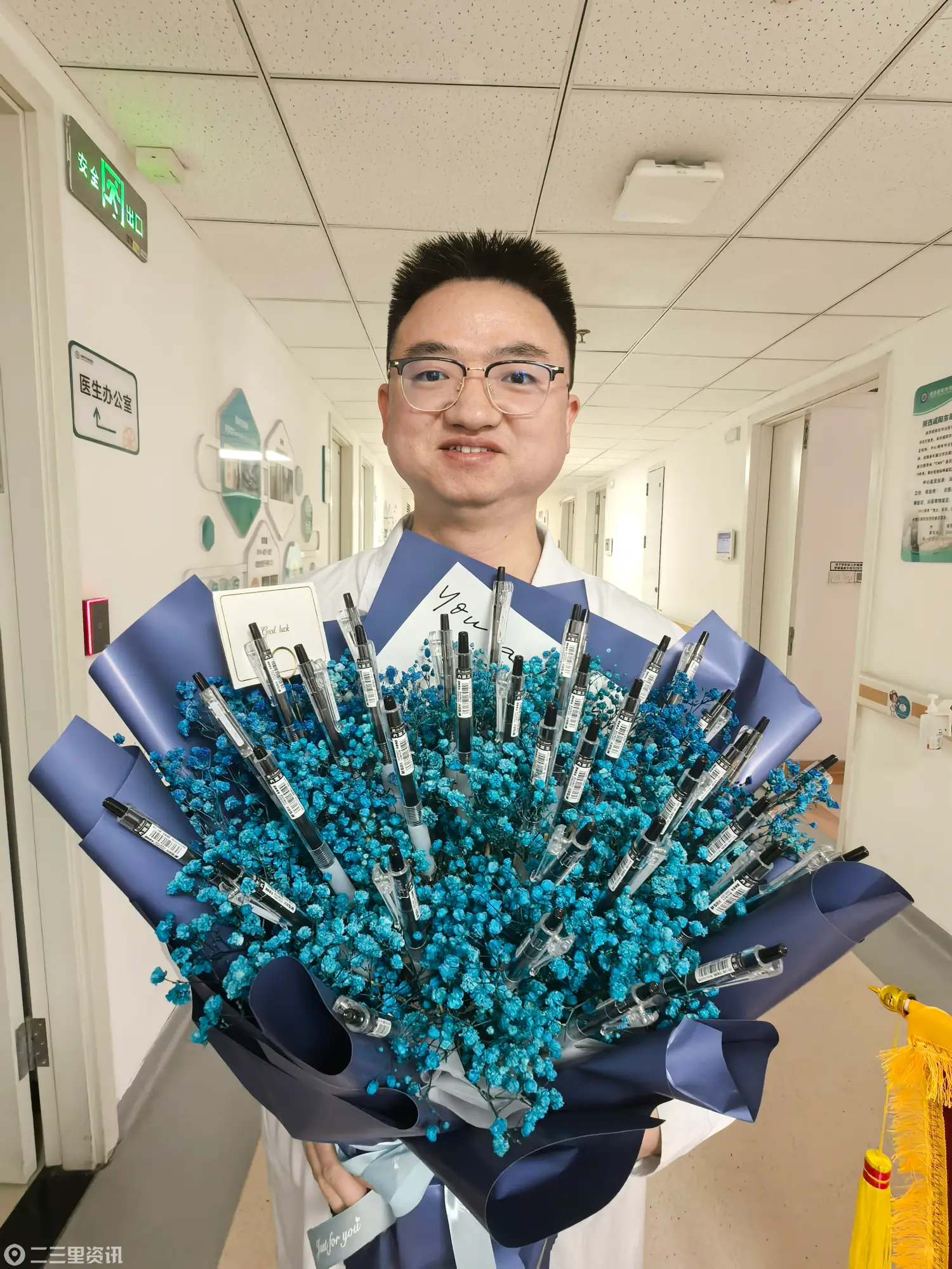 近日,咸阳市中心医院神经外科杜晓亮大夫和全科医护人员收到患者一份“别出心裁”的礼物——一大束由数十支笔精心扎制的“笔花”,一面印有“五星好评”的锦旗,看着患者及家属郑重送来的礼物,大家欣喜非常。