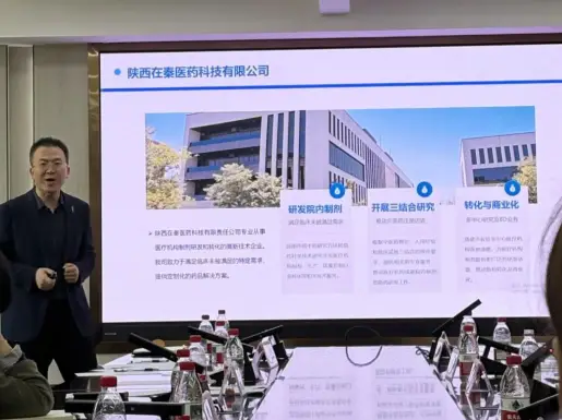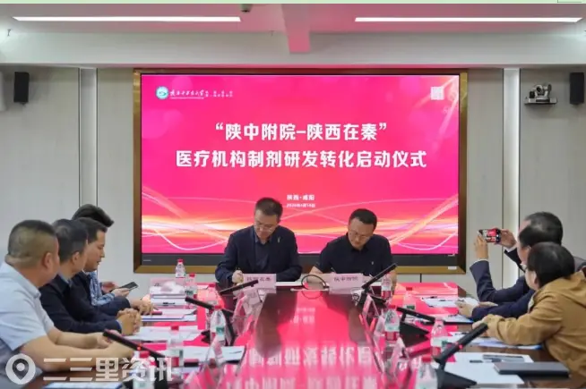 开幕式后,陕西中医药大学附属医院与陕西在秦医药科技有限公司举行医疗机构制剂创新转化启动仪式,医院副院长刘航、陕西在秦医药科技有限公司首席运营官牛江代表双方进行签约。此次签约标志着双方在制剂研发、注册备案、成果转化及产业化落地等方面进入深度协同新阶段,为全省医疗机构中药制剂创新转化树立了可借鉴的标杆。