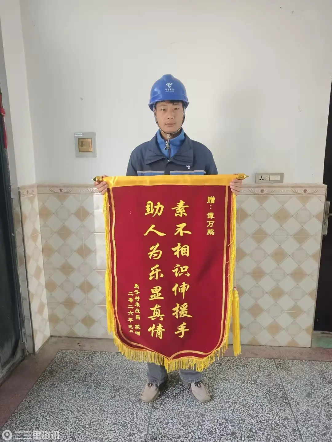 “终于找到你了!谢谢你救了我的家人!”近日,咸阳武功分公司营维人员谭万鹏收到了一份特殊的礼物——一面写有“素不相识伸援手 助人为乐显真情”的锦旗。被救群众的家属专程前来,紧紧握住他的手,手心传来微微颤抖的温度,一遍遍表达着感激之情。这位平日里默默穿梭于街巷的电信装维师傅,怎么也没想到,自己一次“分内”的挺身而出,会被对方如此记挂。