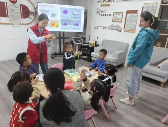 活动伊始,志愿者小杨老师声情并茂地讲述了绘本《谁是捉迷藏冠军》,故事徐徐展开。孩子们被书中生动有趣的情节和色彩斑斓的画面深深吸引,仿佛走进了一个奇妙的捉迷藏世界。互动环节中,孩子们争先恐后地举手发言,分享自己对故事的理解和对“捉迷藏冠军”的看法,现场气氛热烈而融洽。紧随其后的手工环节将活动推向高潮:老师结合绘本主角,带领孩子们用彩泥制作可爱的小蜗牛。在老师的耐心示范下,孩子们兴致勃勃地动手创作,一块块普通的彩泥,变成了一只只形态各异、憨态可掬的小蜗牛。一双双小手在家长的协助下,共同完成了一个个独一无二的“蜗牛宝宝”。