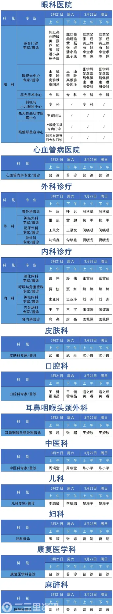 西安市第一医院:周末门诊医生出诊安排(3月21-22日)