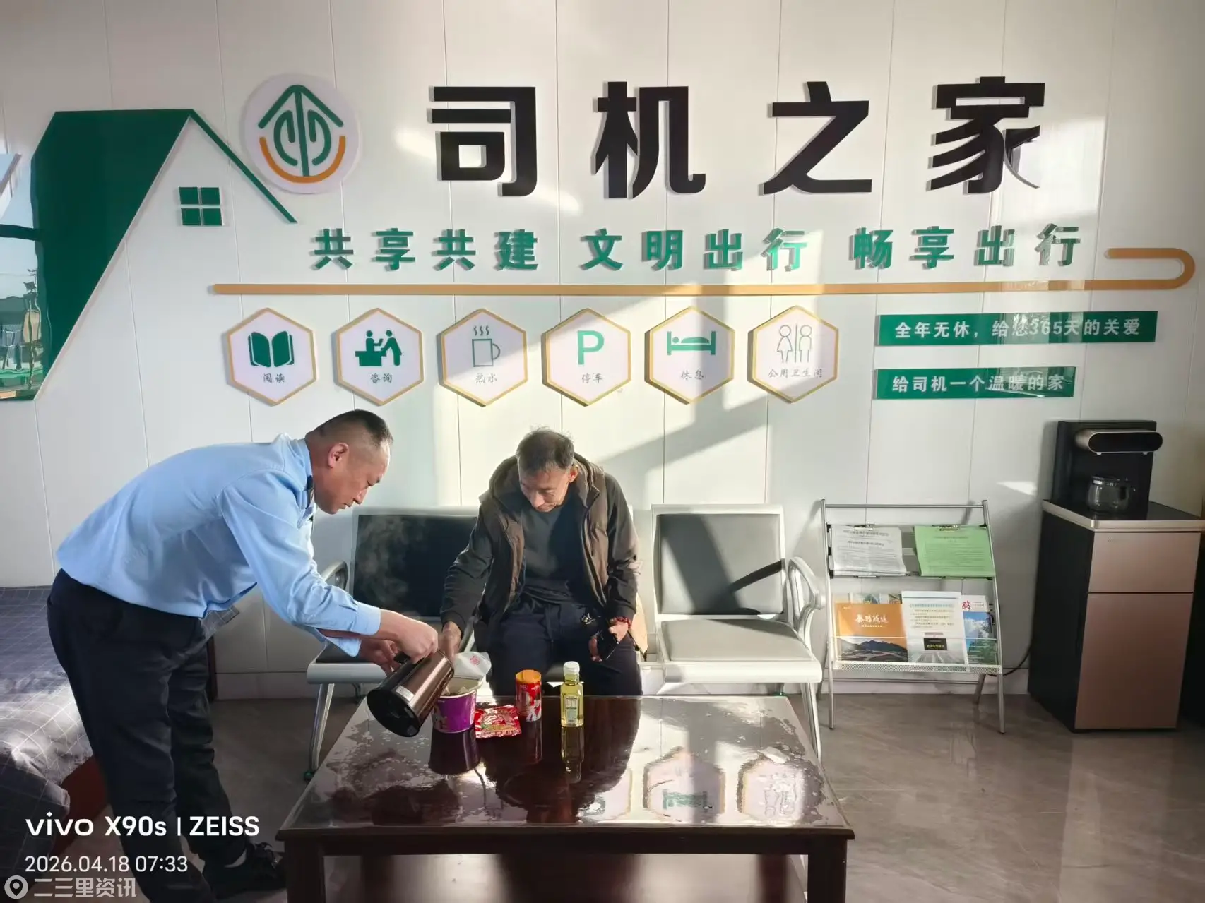 在司机因车辆故障滞留期间,当班工作人员考虑到司机需要,主动为其提供泡面、热水等物资,贴心服务让司机深受感动。