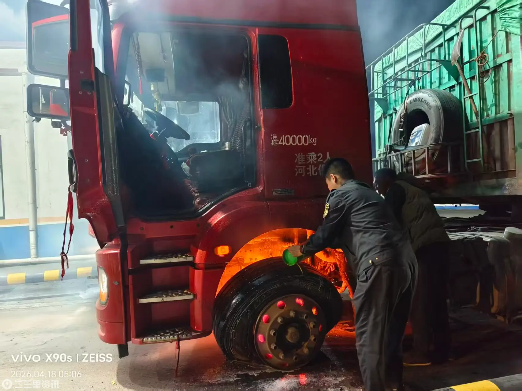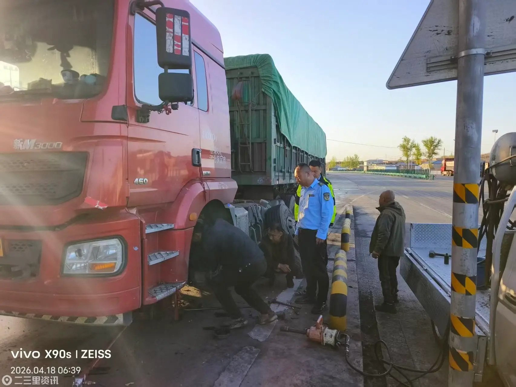 2026年4月18日5时左右,碾房峁超限检测站突发半挂车爆胎轮毂断裂起火,现场火势较旺,情况危急。当班工作人员凭借过硬的应急素养,沉着冷静、快速反应,成功化解险情,未造成人员伤亡及重大财产损失。