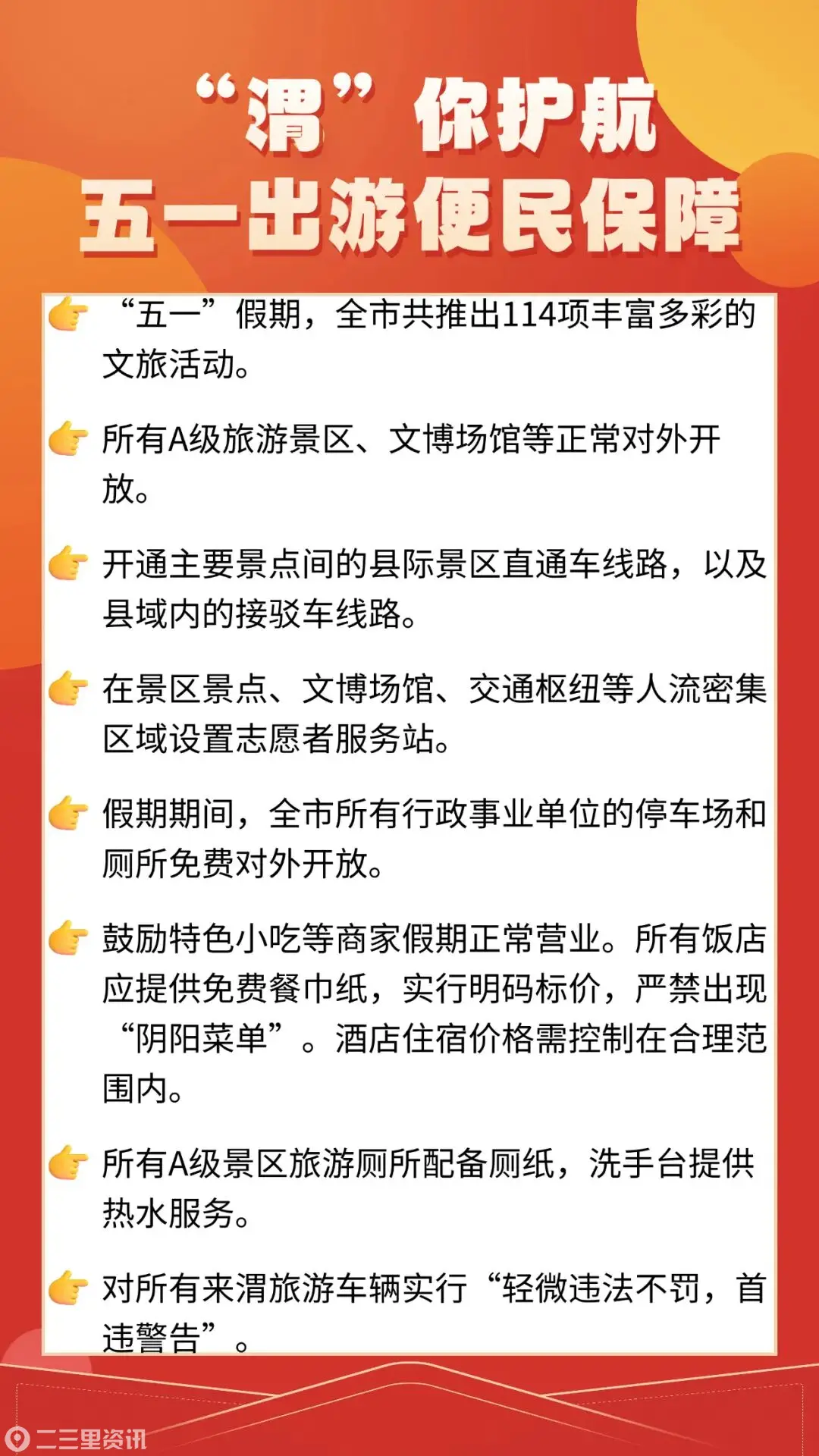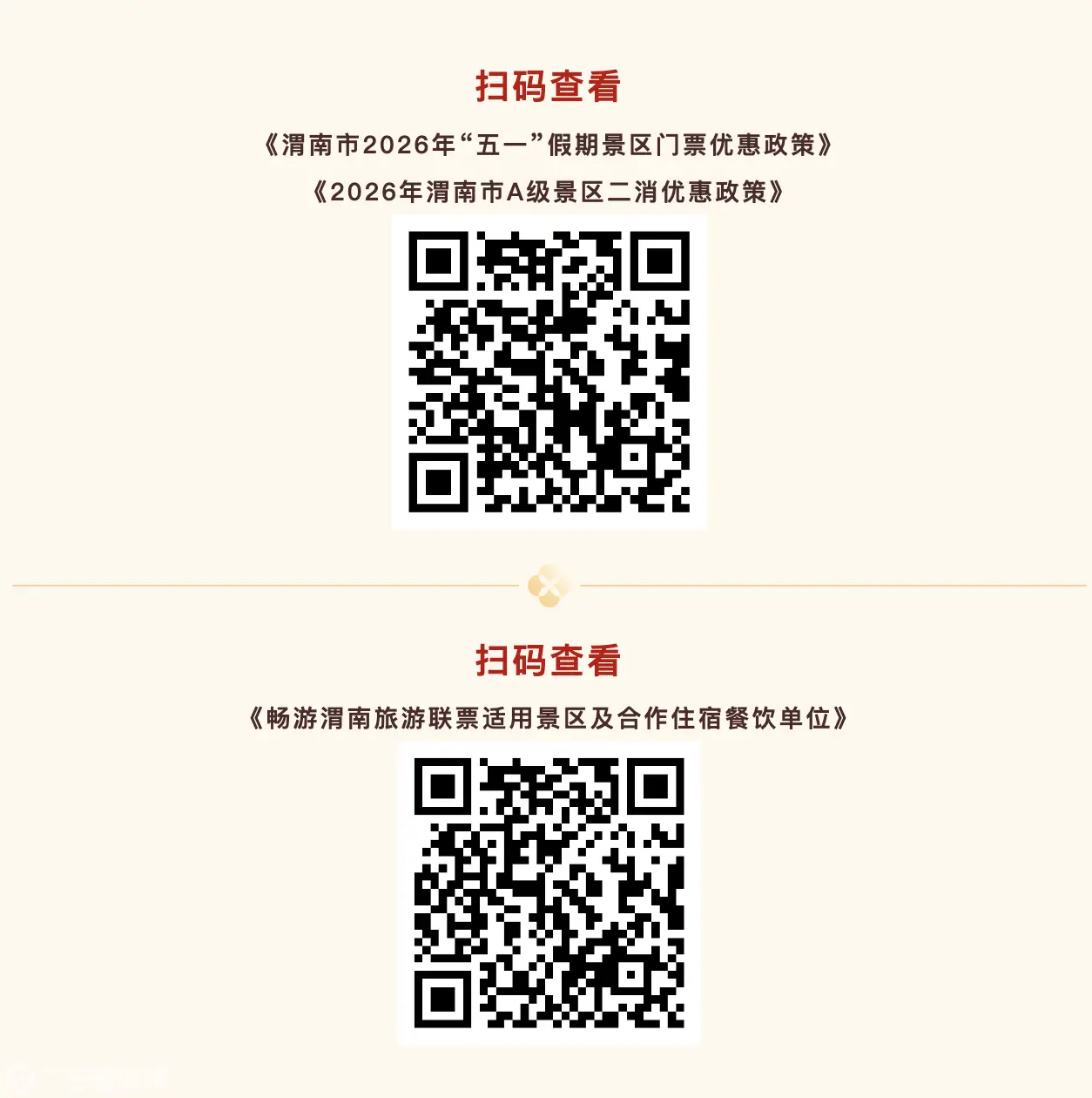 "五一"假期将至,为丰富文旅生活、提升出行体验、激活消费活力,渭南市重磅推出5项文旅优惠政策、8项便民服务举措,以真金白银惠民让利,以暖心服务保驾护航,全力保障假日文旅市场安全有序、精彩纷呈,让每一位市民与游客畅游渭南、悦享美好假期。