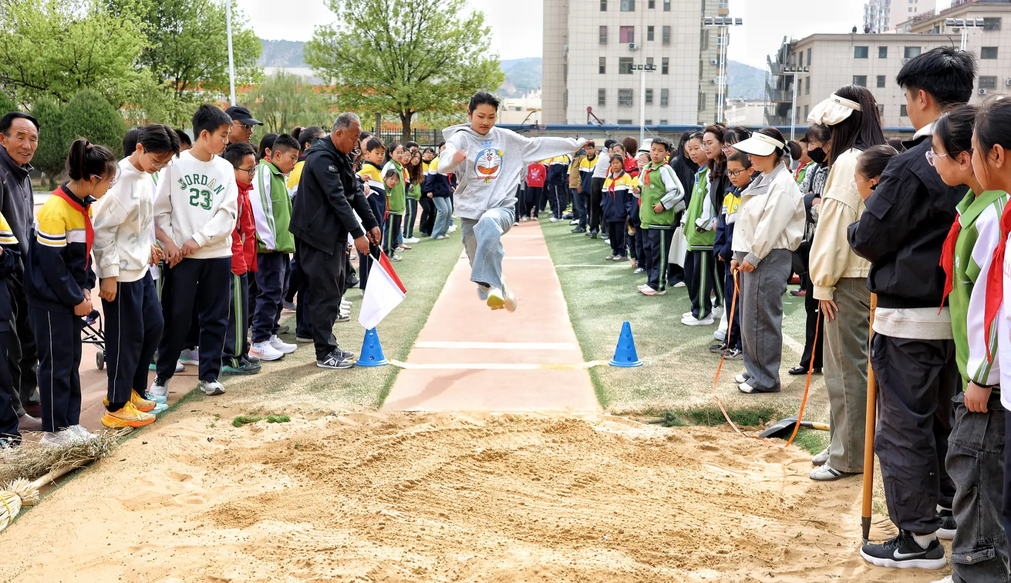 本次运动会设置短跑、跳远、接力赛等多个竞技项目。赛场上,学生们奋勇争先、顽强拼搏,赛道上的全力冲刺、跳远沙坑前的奋力一跃、接力赛中的默契交接,每一个瞬间都彰显他们竭尽全力、永不言弃的体育精神。赛场外,师生们呐喊助威、加油鼓劲,掌声与欢呼声此起彼伏,热烈的氛围燃动整个校园。此外,学校特意为一二年级的学生们设置了趣味运动项目——“春种秋收”,小朋友们在欢声笑语中完成了比赛,不仅锻炼了身体,还学会了合作与分享。