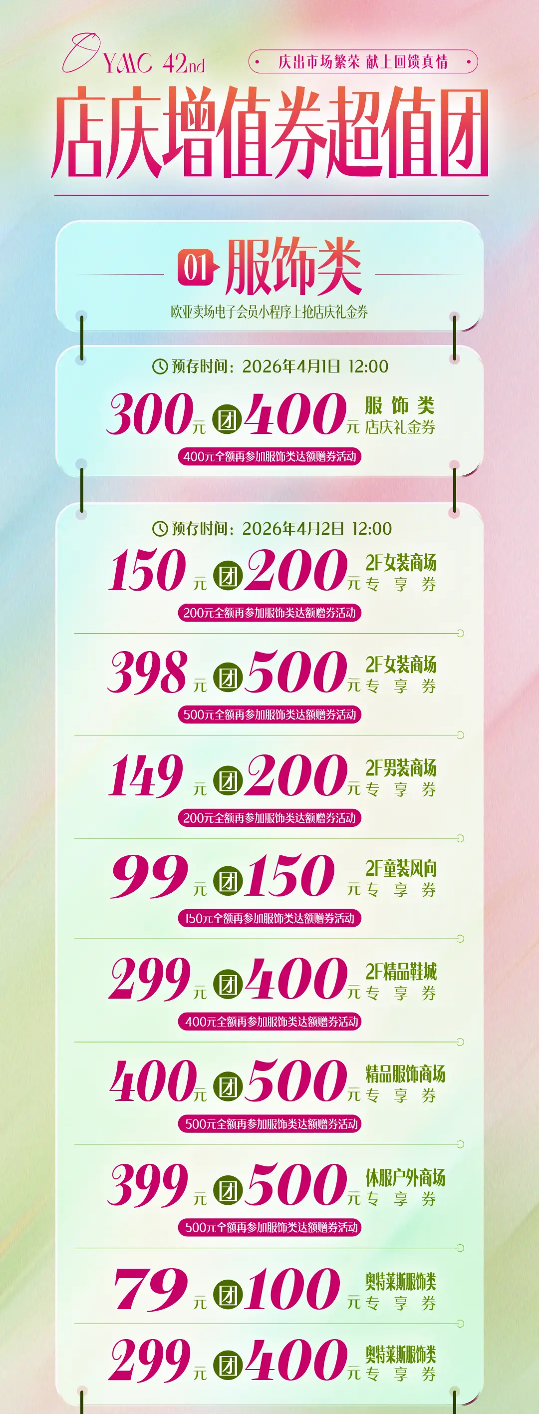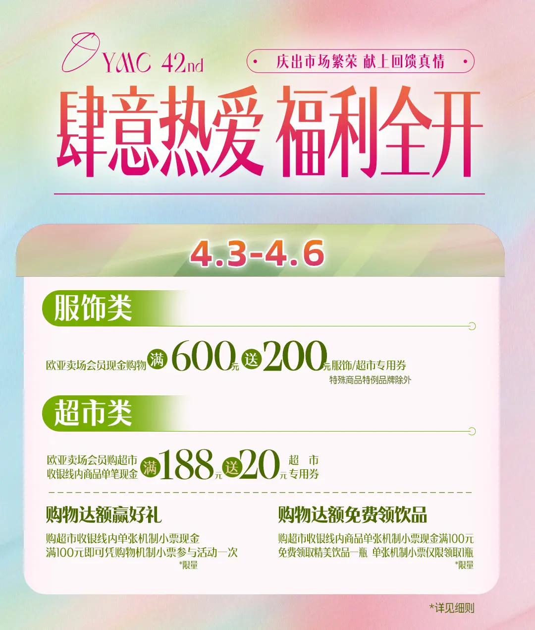 欧亚卖场店庆4月3日震撼启幕!前四天力度超凡!
