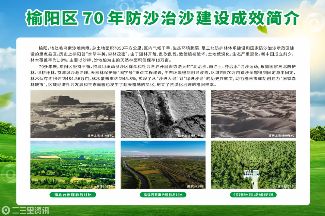 如今,榆阳区风沙危害显著降低,水土流失治理成效明显,生物多样性持续提升,榆溪河湿地、各类森林公园成为鸟类栖息的乐园。小纪汗林场、岔河则乡排则湾村、补浪河女子民兵治沙连等一批示范样板脱颖而出。