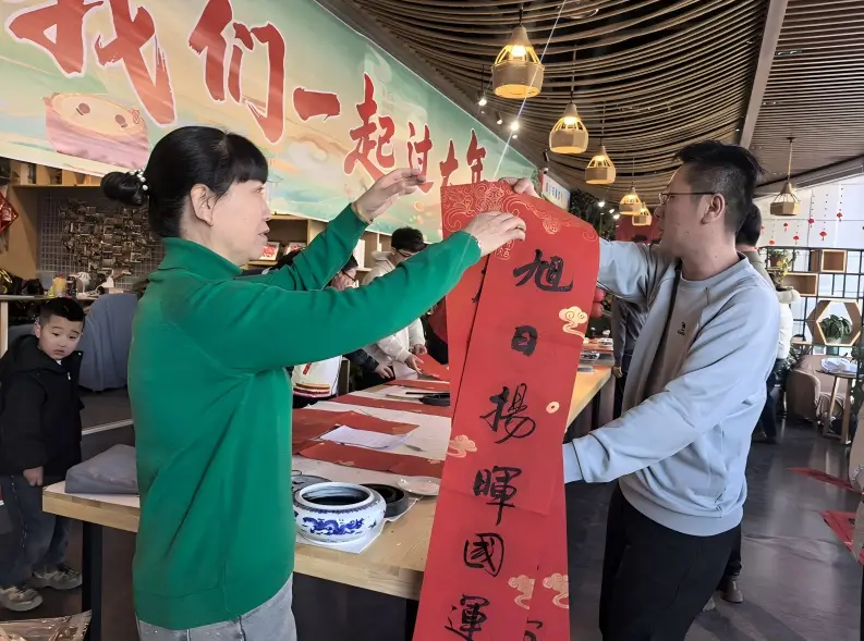 细心收好春联的杨佳奇开心地说道:“往年的春联我都是买的印刷品,总感觉少了点年味儿,今年能拿到书法爱好者亲手写的春联,感觉特别有意义。”
