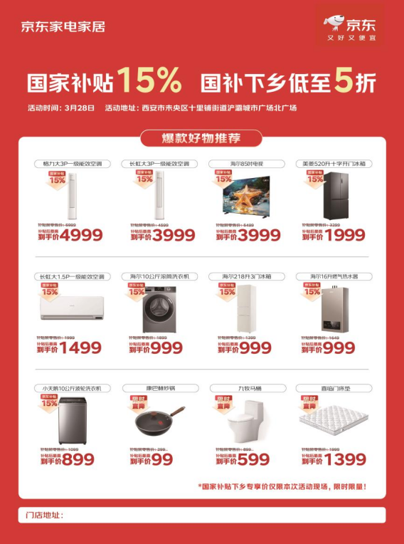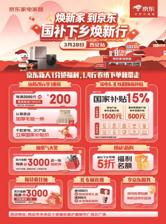 京东“国补下乡焕新行”活动3月28日落地陕西西安 购机送京东延保