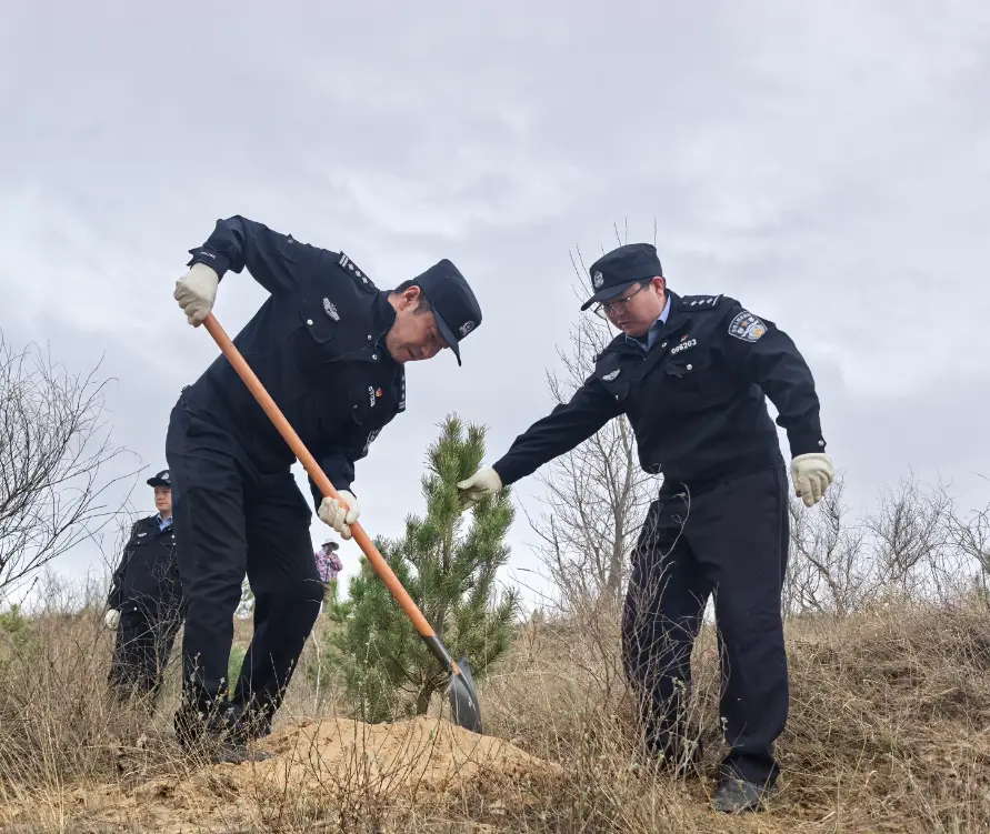 植绿添新景 警心护家园——靖边县公安局开展义务植树活动