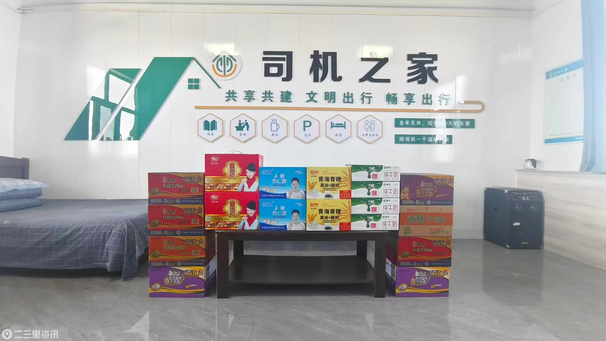 作为连接区域交通的重要枢纽,碾房峁超限站承担着繁重的超限治理和交通服务保障任务。春节期间,面对车流高峰和极端天气等多重挑战,该站提前谋划、周密部署,在"司机之家"服务站点备足方便面、八宝粥、奶制品、饮用水等各类应急食品及生活物资,确保过往司乘人员在遇到突发情况时能够第一时间获得基本生活保障。