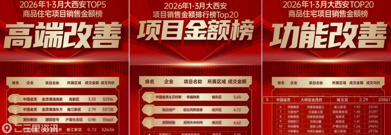 在西安市3万元/㎡以上高端改善项目TOP5榜单中,金茂璞逸高新、金茂璞逸东方、曲江金茂府占据三席,其中璞逸高新持续霸榜Top1,以持续热销态势彰显市场认可度。幸福晓棠更是蝉联大西安项目金额榜桂冠,受到市场的一致热捧,西安公司整体销售业绩稳居行业第一梯队。