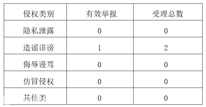 二三里平台网络侵权举报情况统计表统计月份:2026年3月