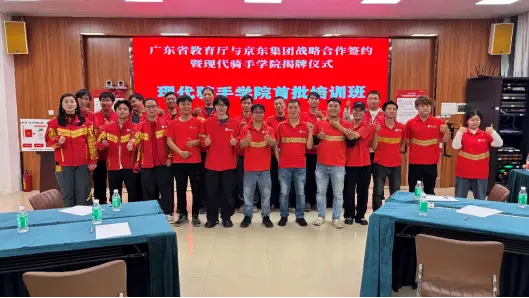 去年底,广东省和京东发起成立全国首家“现代骑手学院”,通过政企校合作的形式探索“高水平技能骑手转岗和职业提升”的新模式,为京东一线员工提供职业发展的能力提升保障,未来三年逐步覆盖京东在粤的所有10万+全职骑手和快递小哥。