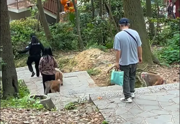 黔灵山公园野生猕猴袭击保安市民,一女子不慎摔倒滚下台阶