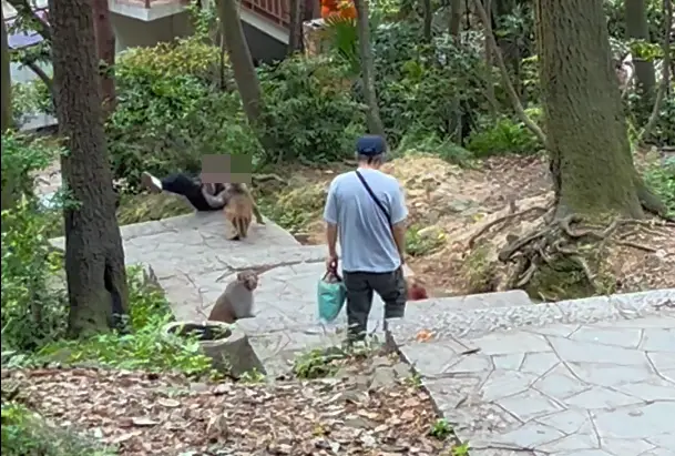 “当时那名保安就慌了,转身开始奔跑,猴子则在后方追赶。途中,保安经过一名正在行走的阿姨,顺手拽了一下阿姨,阿姨甩开她的手后,保安继续往前跑,而那只暴躁的猴子转而攻击阿姨。”小张回忆道,“阿姨起初站在原地未动,以为猴子不会攻击自己,但猴子突然拽住了她的裤脚,导致阿姨不慎摔倒滚下台阶。阿姨的手部受伤,流了不少血,随后保安及时拨打了电话,并陪同阿姨前往处理伤口。”