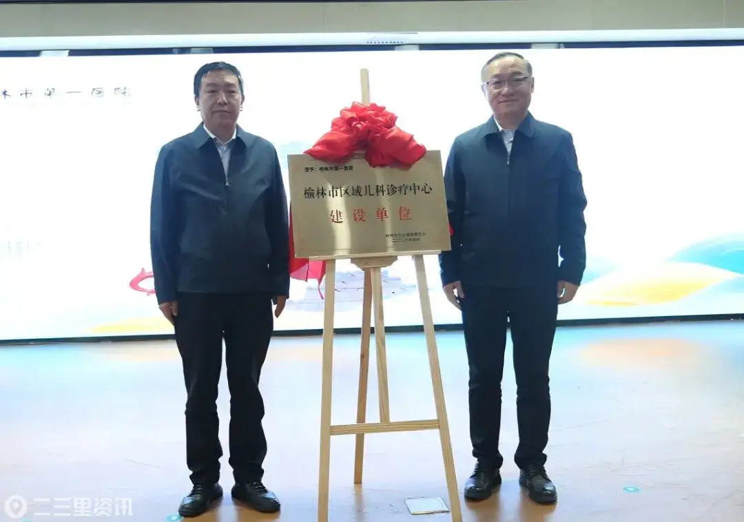 万正平与李和平共同为榆林市区域儿科诊疗中心揭牌。