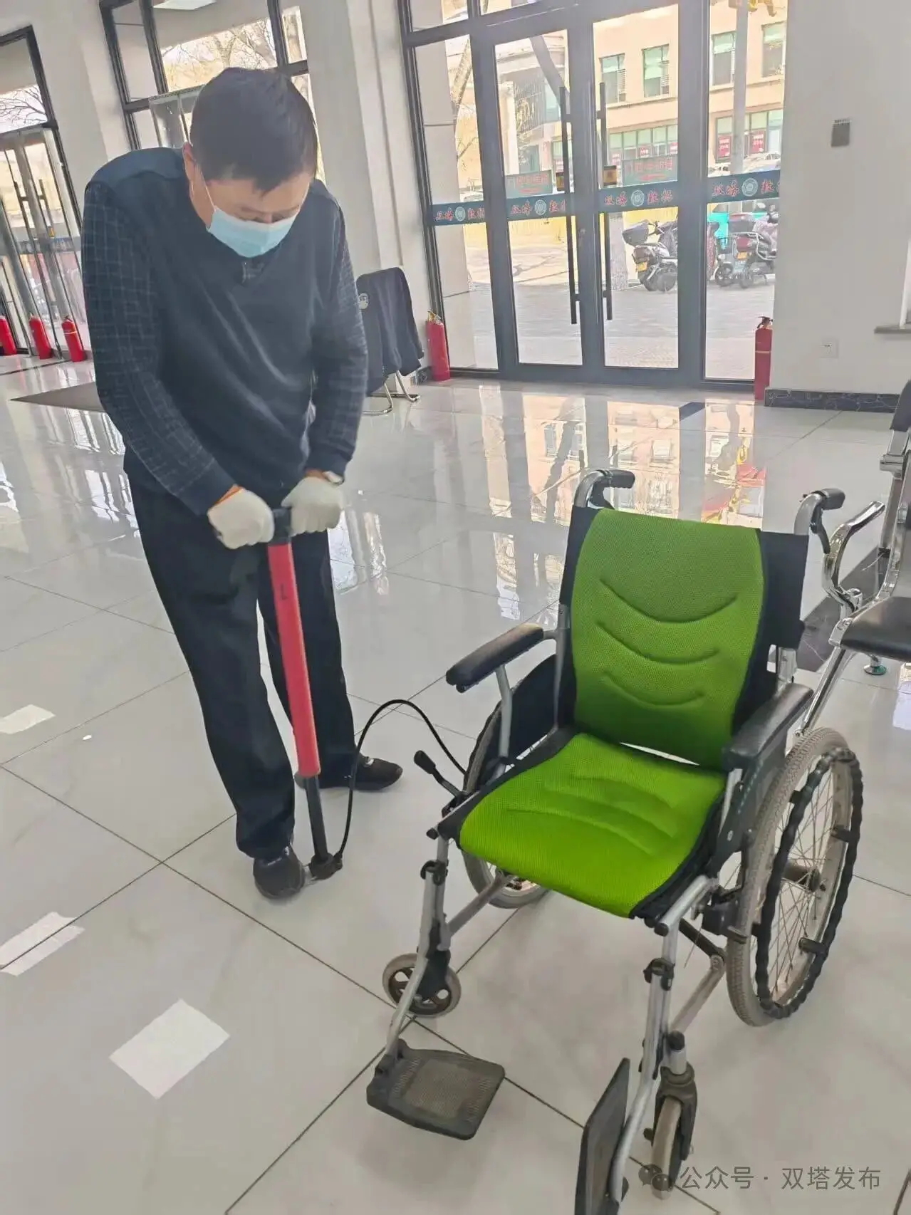 当日上午,一位乘坐轮椅的残疾人群众来到双塔区政务综合大厅办理业务。大厅工作人员留意到该群众行动不便、独自办事的情况,始终耐心引导、细致协助,保障了业务办理的顺畅进行。中午12时许,业务顺利办结。考虑到群众外出就餐不便,区数据局食堂主动为其准备了热气腾腾的饺子,让他能在大厅内安心用餐,免去了奔波之苦。用餐结束后,细心的保安人员发现其轮椅车胎气压不足,立即主动拿来充气工具,为轮椅车胎仔细补气,确保群众返程途中安全顺畅。该群众连连道谢,对大厅贴心、暖心的服务赞不绝口。