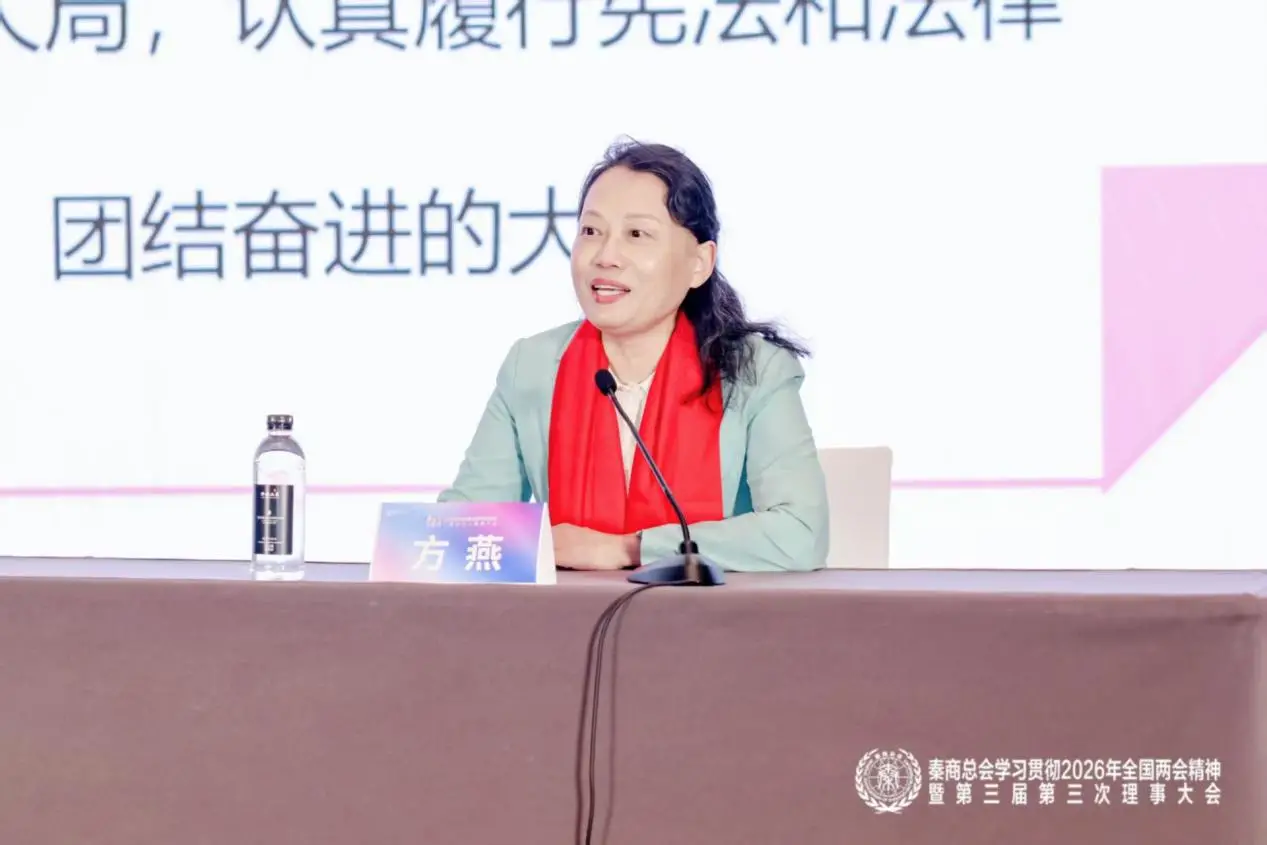会议首先进行全国两会精神专题宣讲。全国人大代表、北京金诚同达律师事务所高级合伙人兼西安分所主任方燕结合履职经历,系统传达了第十四届全国人大四次会议精神。她重点围绕《生态环境法典》的出台、民营经济促进法的落地实施、法治政府建设以及“十五五”规划纲要中的新质生产力、绿色发展等关键词进行重点宣讲。方燕代表强调,法治是最好的营商环境,她呼吁广大企业家要认真学习两会精神,从产业布局中找准方向,更要学会运用法律武器保护自身合法权益,防范企业经营风险。