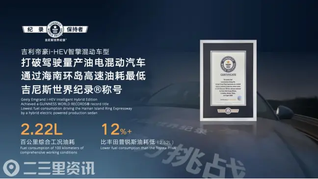 除了追求最高热效率,吉利i-HEV智擎混动还依靠P1+P3电混构型的高功率电驱和60C大倍率混动专用电池,让发动机只在高效区运行。实测显示,吉利第5代帝豪i-HEV智擎混动在海南环岛高速油耗测试中,实测百公里综合油耗仅2.22L,创下全新的吉尼斯世界纪录;尺寸更大、车身更重的星瑞i-HEV智擎混动实测百公里综合油耗也仅2.58L,彻底颠覆传统混动的节能极限。