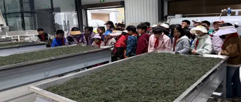 采摘结束后,师生们一同走进制茶车间,近距离探秘鲜叶蜕变名茶的全过程。杀青、揉捻、干燥……一道道传统制茶工序有序呈现,制茶师傅一边熟练操作,一边耐心讲解每道工序的原理与技巧,孩子们围在一旁,目不转睛地观看,听得全神贯注,眼中满是新奇与赞叹。“原来一杯清茶要经过这么多繁琐工序才能制成!”学生们纷纷感慨,在亲眼见证、用心聆听中,真切感受到传统制茶工艺的精湛,领悟到非遗技艺背后的匠人精神与古人的无穷智慧,心中油然而生对传统文化的敬意。