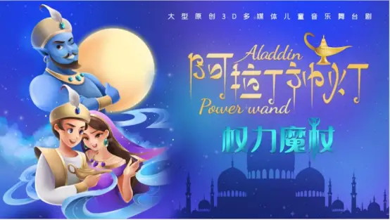《阿拉丁神灯·权力魔杖》是一部专为亲子家庭倾力打造的大型原创3D多媒体儿童音乐舞台剧。该剧以经典童话《阿拉丁神灯》为创作蓝本,巧妙融入"神灯"与"权力魔杖"两大魔法秘宝的奇幻设定,通过跌宕起伏的冒险故事,生动诠释了勇气、善良与正义终将战胜贪婪的永恒主题。其独特的艺术表现形式兼具视觉震撼力与审美价值,在带给观众视听享受的同时,更传递出积极向上的教育意义。