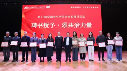 校园安全建设,家校协同是关键,社会联动是保障。为进一步凝聚家校安全共育合力,推动交通安全教育从校园延伸至家庭,活动现场举行了隆重的“交通安全宣教员”聘任仪式。李栋政委、任卓涛副局长、许国锋教导员及马忠科理事长共同为受聘的优秀家长代表颁发聘书,正式组建起学校首批家长交通安全宣教队伍。这份聘书,不仅是“警校家”三方共建校园安全防线的重要纽带,更是打通交通安全教育“最后一公里”的坚实桥梁,让交通规则从课堂走进家庭、融入日常,让安全意识从被动认知转化为自觉习惯。受聘家长代表周小丰在发言中郑重承诺,将以高度的责任感和家长的温情,把交通安全理念融入家风建设,带动全家践行文明出行准则,助力孩子树立牢固的安全意识,守护青春平安之路。