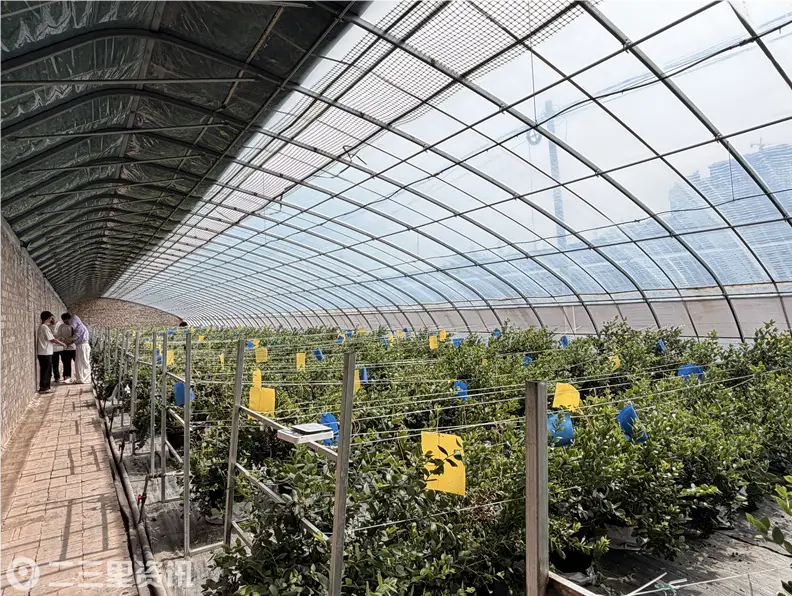 “2024年7月,我公司在水磨河村承包了80座日光温室,其中35座用于种植蓝莓,重点打造特色蓝莓种植基地。我们采用先进的环境调控与水肥一体化技术,实行有机基质无土盆栽,全程实行标准化、精细化科学管护,目前蓝莓已陆续进入采摘期。”神木市飞科新农村科技股份有限公司技术人员高春怀介绍。