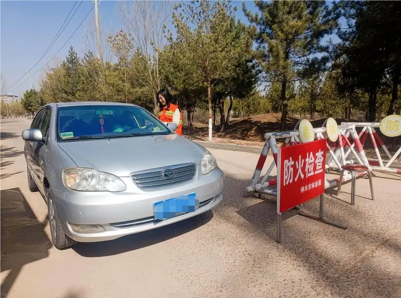 在神木市气象局防火检查点,护林员刘晓艳和同事们正在对进山的车辆和行人进行逐一排查。这道卡口是进入林区的第一道安全“过滤网”,所有进山人员与车辆均需登记信息、上缴火种,并同步接受森林防火宣传教育,从源头阻断火源入山通道。“作为卡口值守人员,我们主要负责把好进山入口关,严禁携带火种、火源进入林区。”刘晓艳说。