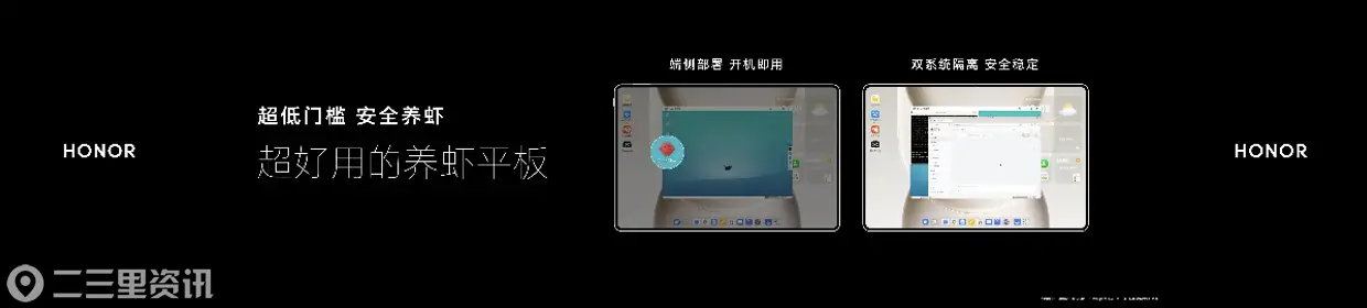 荣耀MagicPad3 Pro 12.3全新推出了Linux实验室,是行业首款支持Linux与安卓双系统的平板产品,支持“龙虾”端侧部署,开机即用,预制丰富Skill,大幅降低养虾门槛。荣耀行业首创基于双系统的文件系统隔离方案,实现双系统独立运行、安全隔离,有效规避“养虾”过度使用安卓系统权限,降低个人隐私数据泄露风险,让用户在轻松“养虾”的同时,无需担忧信息安全问题,真正实现“超低门槛、安全养虾”,堪称“行业最佳养虾平板”。