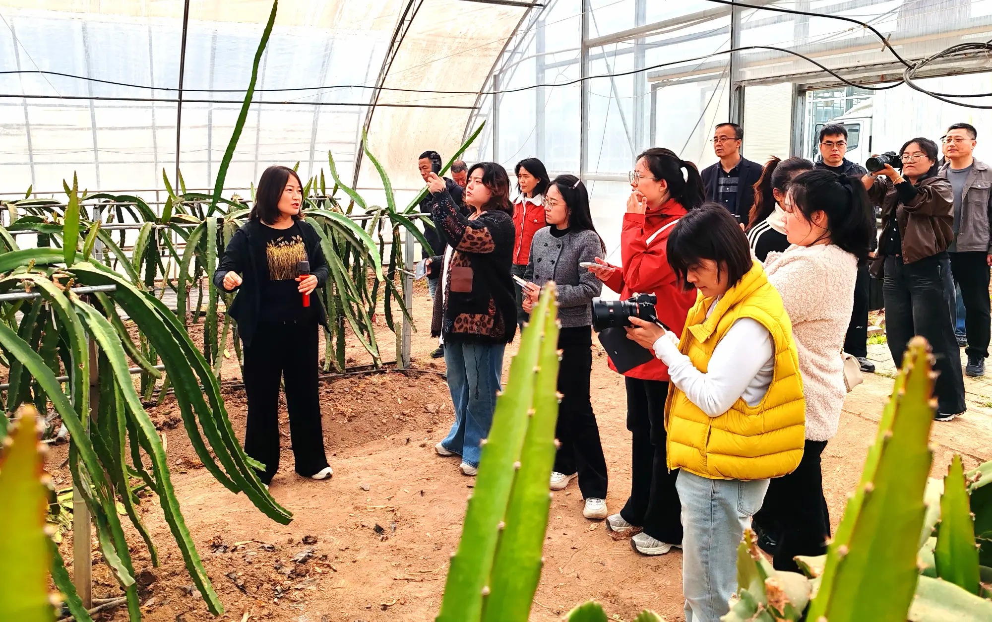 王艳介绍:“国内市场,除西藏外全国各省市均有基地种苗推广,成为乡村振兴特色产业抓手;国际市场,2019 年开启种苗出口,从意大利、西班牙、葡萄牙,到希腊、菲律宾,再到今年对接阿富汗,累计出口十余个国家,实现从技术引进到成果输出的跨越。”北方种植的火龙果,鲜果销售从6月持续至3月底,一年8—10批分批成熟,兼顾种苗繁育与果干、果酒、果茶等产品深加工,形成 “鲜果+种苗+深加工”多轮驱动的产业链,以科技创新激活全年产业效能。