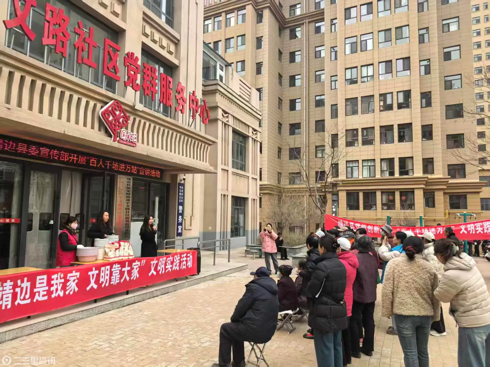 (白凌燕 卢小龙)连日来,靖边县以“靖边是我家 文明靠大家”主题活动为牵引,持续深化“百人千场进万站”新时代文明实践活动,把文明实践阵地延伸至信合小区、采油厂小区、紫薇花园、惠民苑等居民小区,以理论宣讲、文明宣传、互动问答、便民服务“四位一体”的务实举措,凝聚全民共建合力,掀起文明实践热潮。