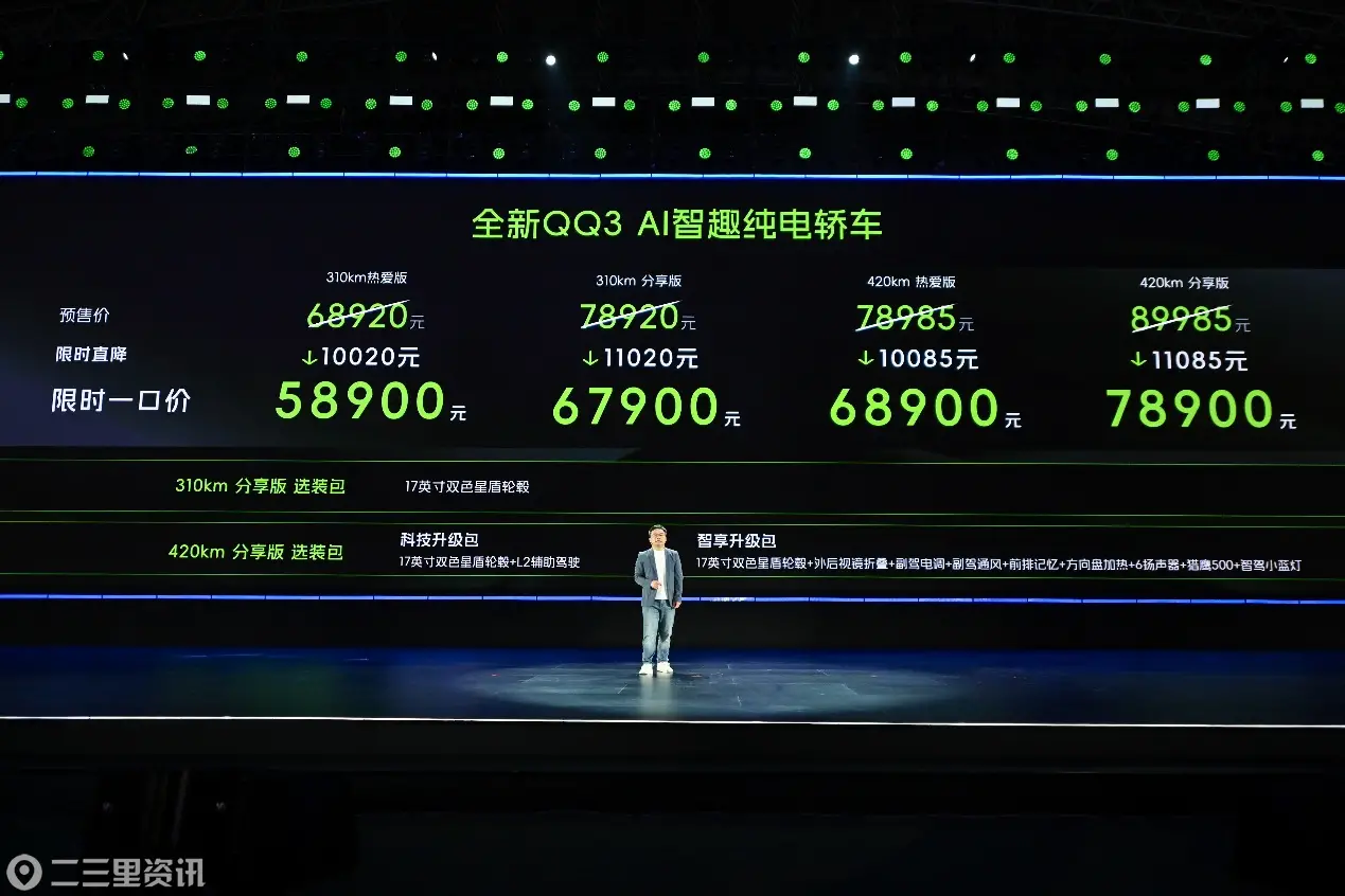 2026年3月30日,在万众瞩目下,奇瑞汽车正式宣布全新QQ3上市,以“王者归来 一部到位”为主题,宣告这位中国汽车史上的“国民小车”王者,以原生智能纯电的焕新姿态强势回归市场。新车凭借盲订超6.1万、预售超4.3万的惊人热度,不仅承载着超过150万用户的情感记忆,更以颠覆性的产品力,剑指全球A0级精品车市场领导地位。