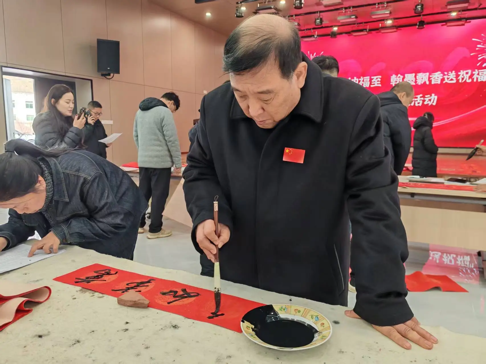 活动现场,红笺铺展如霞,墨汁研磨似泉。公司特邀知名书法家、陕西省书法家协会原副主席吴福春一行与公司原党委书记杜银川、经理助理张秦龙齐聚案前,提笔蘸墨间,笔锋或刚劲,或飘逸。吴福春先生率先落墨,“聚力凝心启盛章,扬鞭策马奔前程”的楹联一气呵成,引得在场职工纷纷驻足喝彩。
