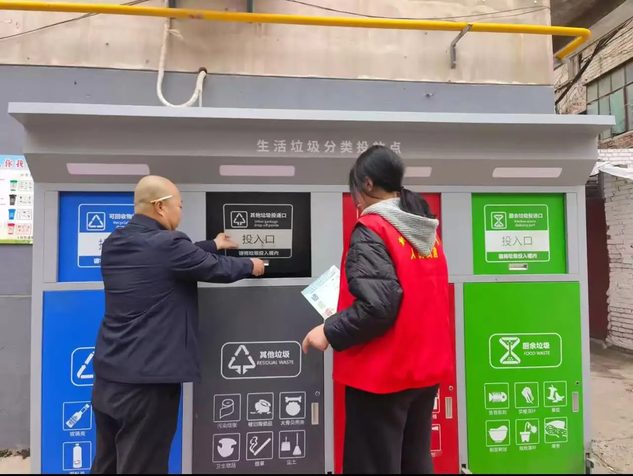 人民街道部分社区以“践行新时尚 分类志愿行”为主题,充分发挥志愿服务力量,开展“垃圾分类来‘敲门’因‘渭’有你更精彩”活动,通过流动小喇叭播放分类口诀、入户宣传、投放点现场指导及商铺宣讲等形式,普及分类知识,引导居民争当分类“宣传者”“践行者”“监督者”。社区干部逐户发放宣传资料,详细讲解分类标准与投放要求,重点指导餐饮商户规范处置餐厨垃圾,普及投放技巧,并结合日常案例为居民解答废旧电池、过期药品等易混淆垃圾的分类疑问,引导居民实现从“要我分”到“我要分”的转变。